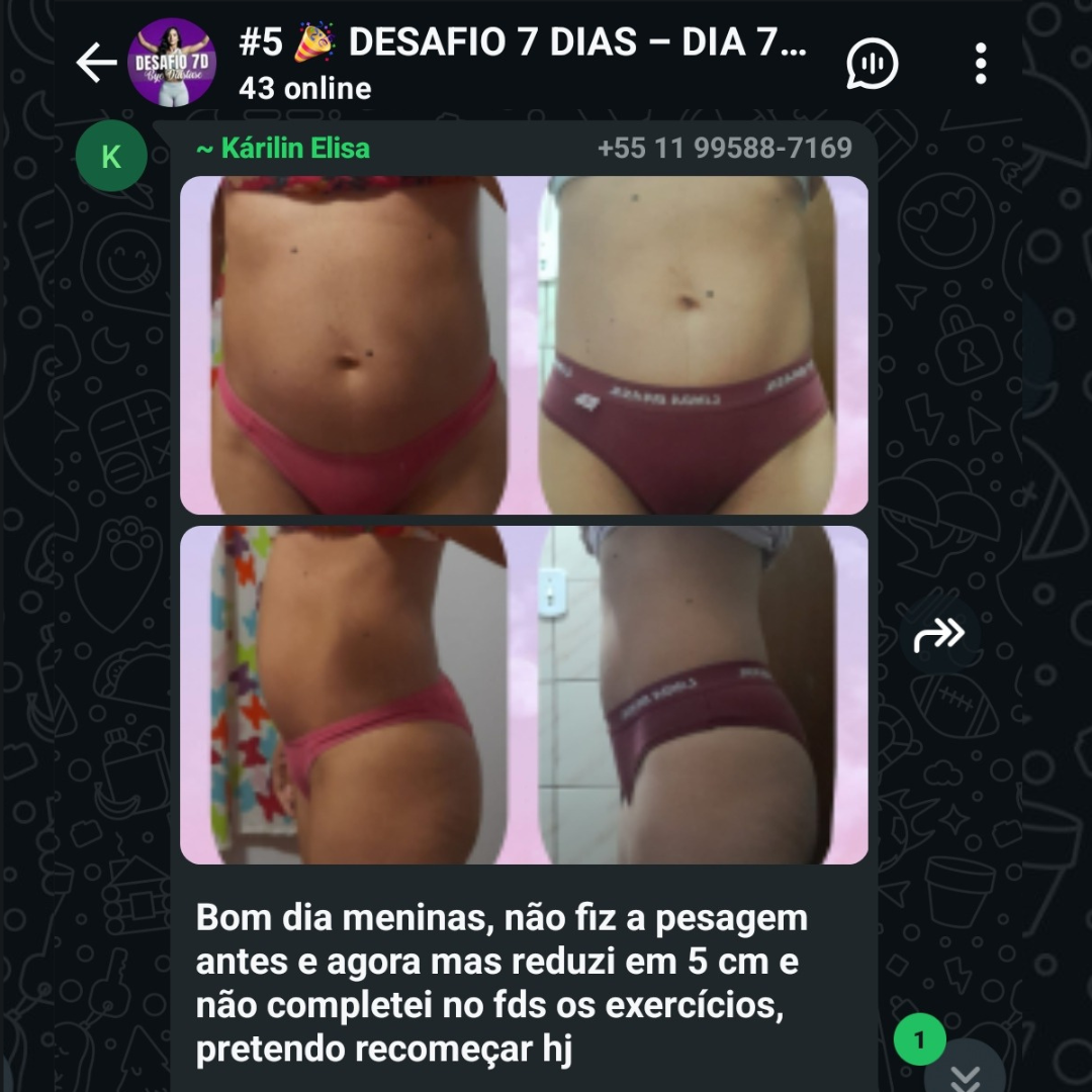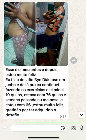 Esse não é um desafio comum. O Desafio Bye Diástase será transformador na sua vida. São Treinos de baixa intensidade, porém muito efetivos. Se você seguir as minhas instruções, você perderá 4cm de barriga em uma semana! A partir da próxima Segunda-feira, você receberá pelo WhatsApp os treinos e vídeos com meu Método que foi considerado um dos 3 Melhores Programas de Tratamento em Diástase do Brasil.
